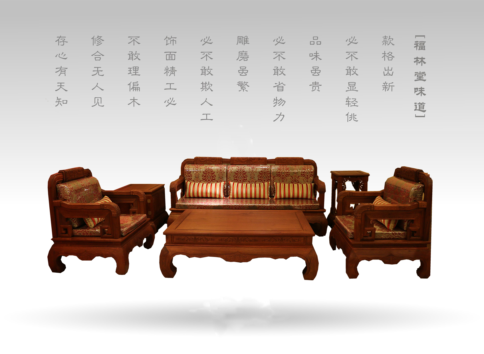其次,我們可以根據前面對紅木家具的分類,分別進行選購,對仿古紅木沙發:應參考圈椅、官帽椅等形制相似的家具,即對其材質、雕工、拼料、榫卯結構等因素仔細辨別;而對新中式紅木沙發:則應當著重考量家具設計的優劣和工藝的運用。