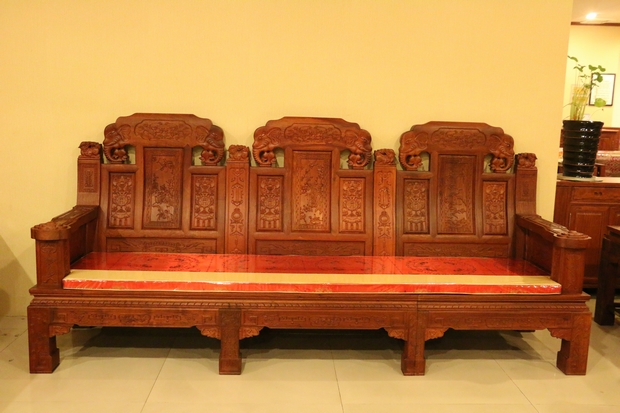大家好,今天我們福林堂紅木要為大家介紹的這一款沙發,其名字內容較為通俗意賅——“豪華如意”。“豪華”之意:一是代表其所選用材質——緬花的珍貴,二是因為那浮華鐫秀裝點紋飾的富麗;而如意則指的是這些紋飾在其內部所承載的深厚寓意,這其中包含有喻以吉祥富貴吸財之意的大象紋、代表祥和福瑞之意的麒麟紋、還有寓帶五福象征不老不衰的梅花紋、以及擁有幸福之意的蝙蝠紋、銅錢、魚紋、銅鈴紋飾等等,它們以物喻情,這也是紅木家具不同于多數一般類普通家具的重要標志所在,可以說,它們已經不單單是一件生活中的家具品那么簡單,這其中也包含了所使用主人內在的精神世界追求和意志情感寄托之需要。