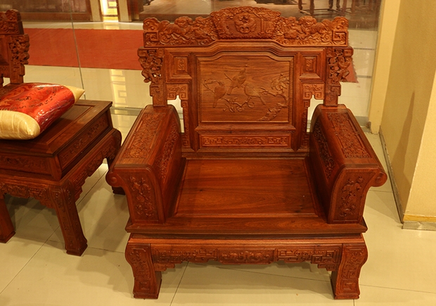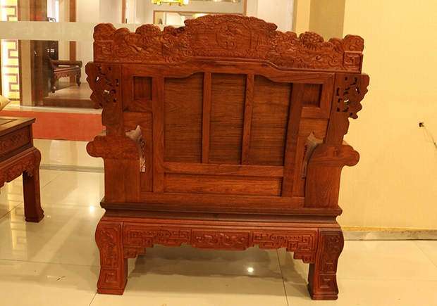 縱觀整體單人位沙發(fā)之特點,給人以一股濃濃的中國風氣息感受,沉韻而不張揚,內(nèi)斂而又含蓄,雕繪出的紋樣作品中,有溫馨和美母子相依而偎幸福生活的場景畫面,有古樸而又美艷,朝氣而又靈動的自然鳥語畫卷,還有那威風凜凜憨態(tài)可掬能夠“報瑞呈祥”的送子麒麟,以及那騰空而起高高而立駕云飛舞的盤旋巨龍。無不彰顯出一股生命的活力與生氣,熱切而澎湃,身表祝福:表達其龍瑞呈祥,幸福安康之意。